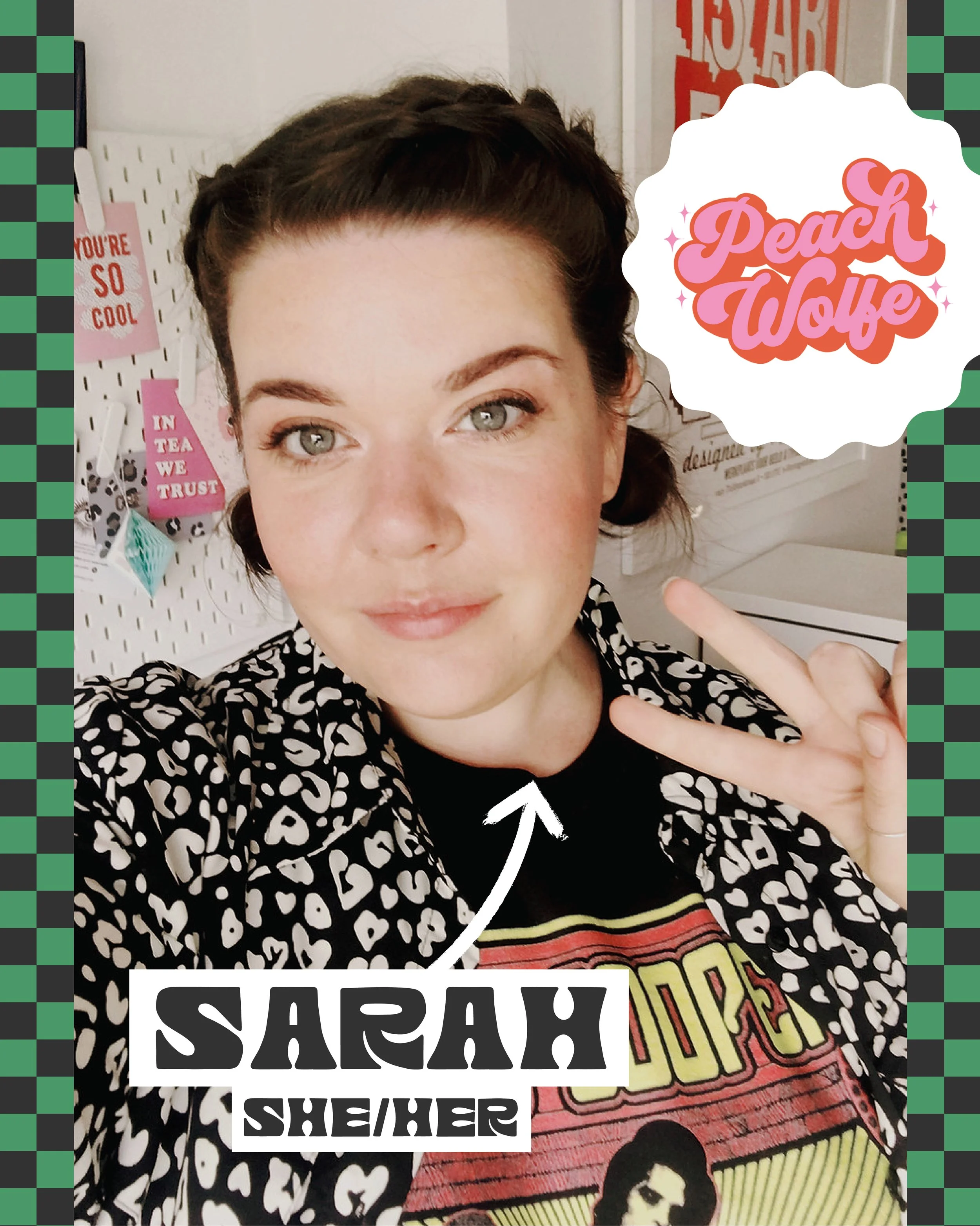 My name is Sarah (she/her) though I do love it when people on instagram call me ‘Peach’ because it’s much more interesting than Sarah! I am a stationery designer from Worcestershire, specialising in the more colourful, bold, non-traditional type of wedding stationery!