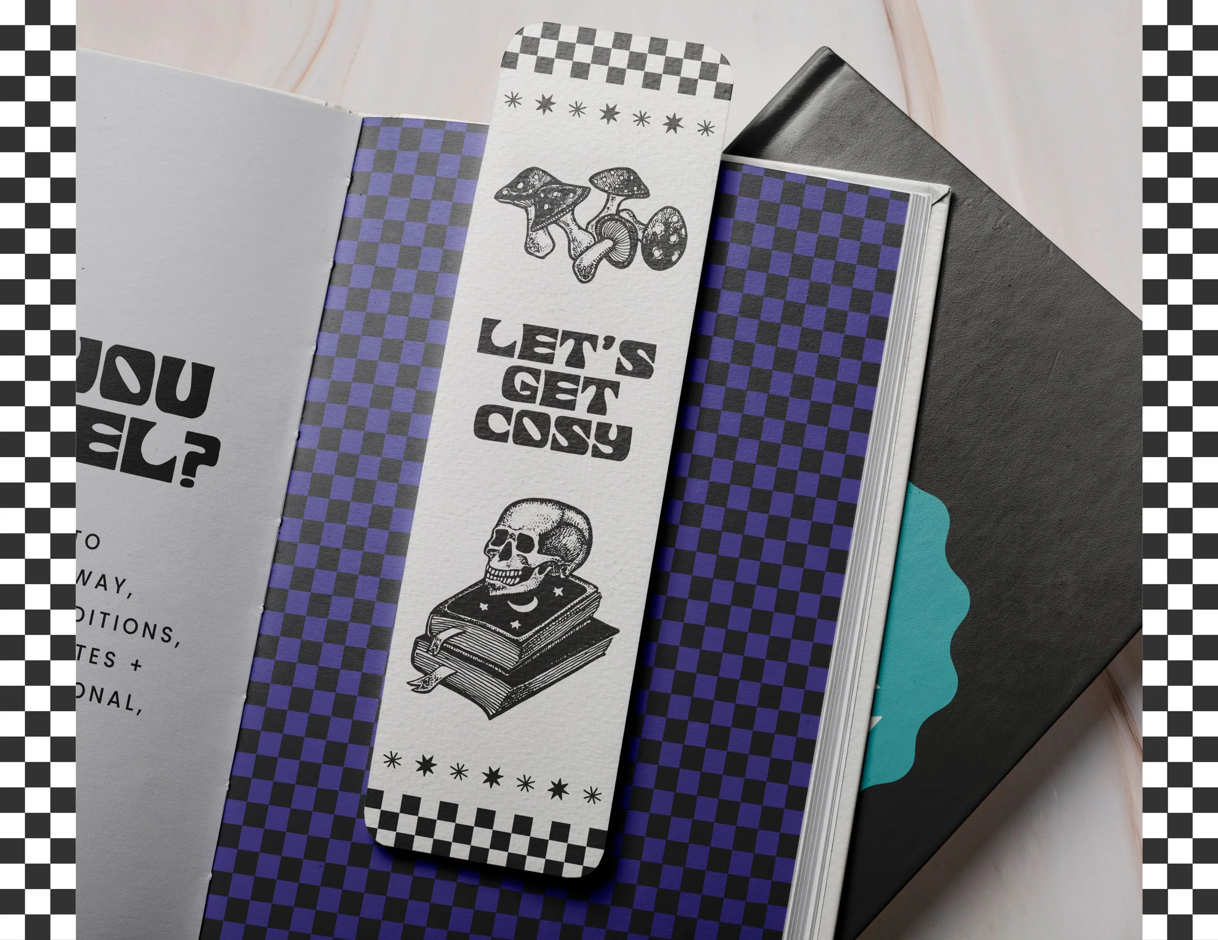 Download this free bookmark design and you’re sorted. Print it at home or at a local printers and if you can, choose a lovely paper stock like Tintoretto Gesso in 300gsm or a thick card for the most premium finish.
