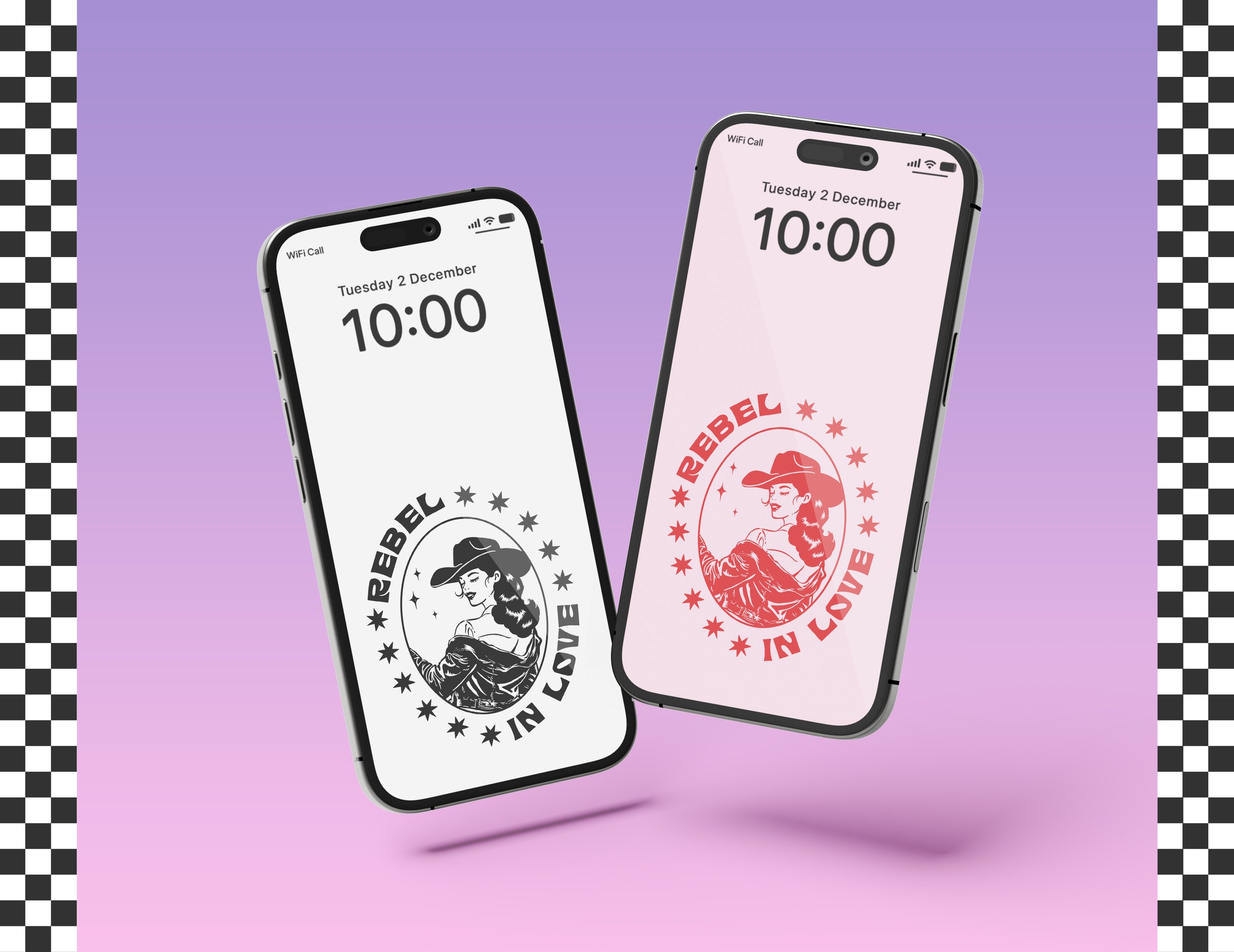 Pimp your phone’s home screen with a fresh wallpaper, featuring a disco cowgirl and my fave tagline, rebel in love. Every time you pick your phone up this month (and beyond!) it’ll remind you about your happy wedding plans, a new year to look forward to and of course, your loverrrr.