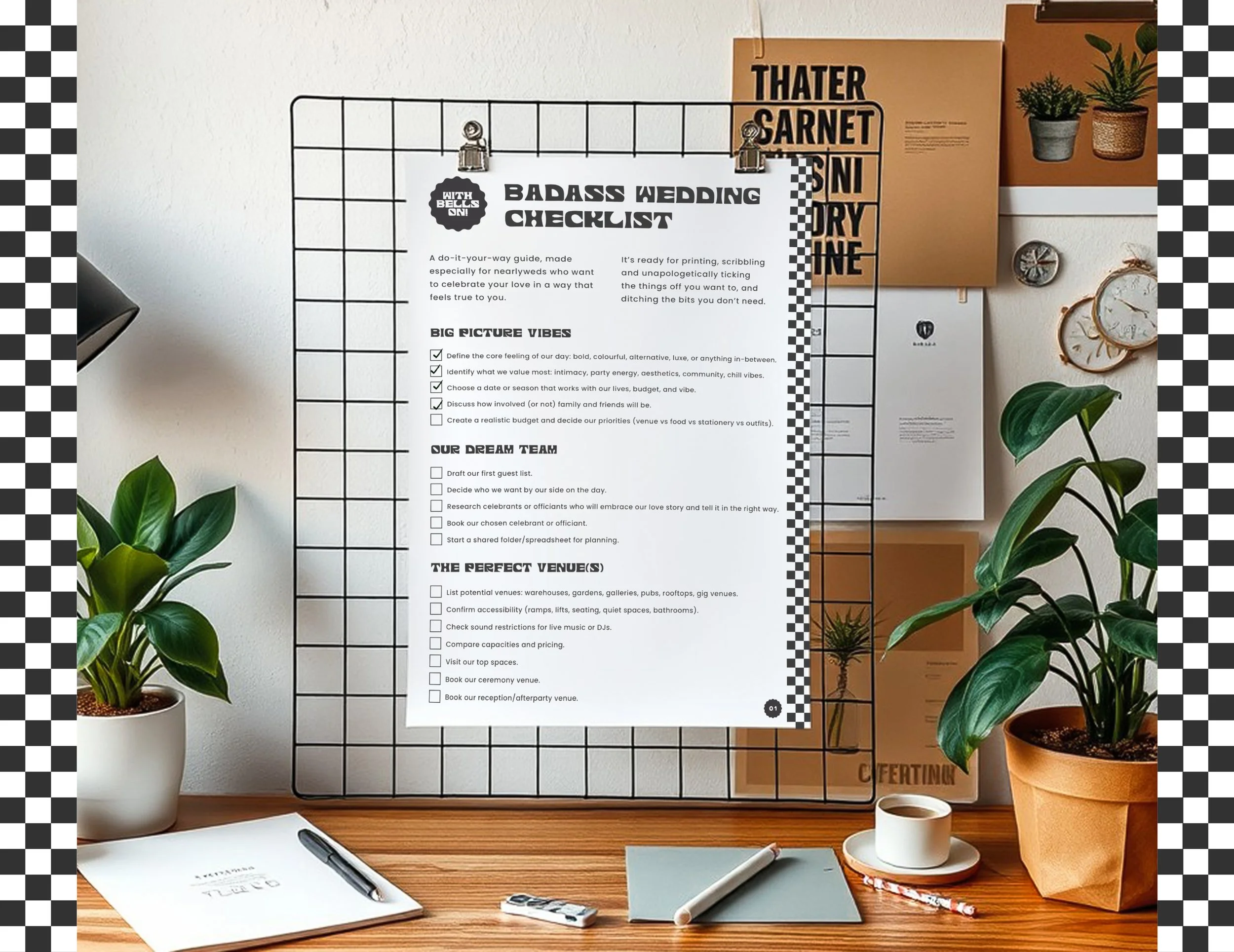 There are no rules. You tick off what you want and ignore what doesn’t work for you. This checklist exists to help guide you but not to boss you about, so remember to stay true to your plans and vision.